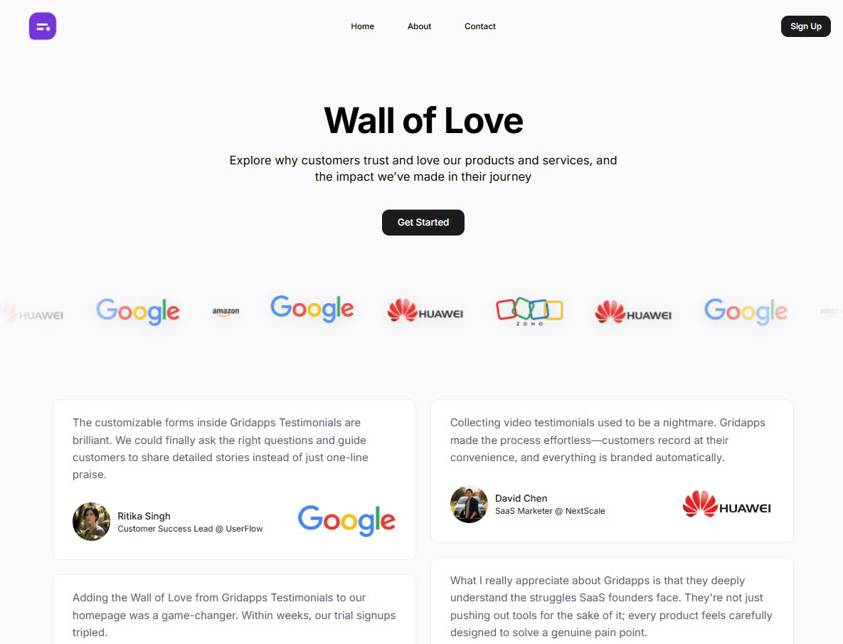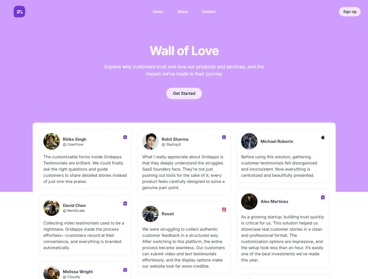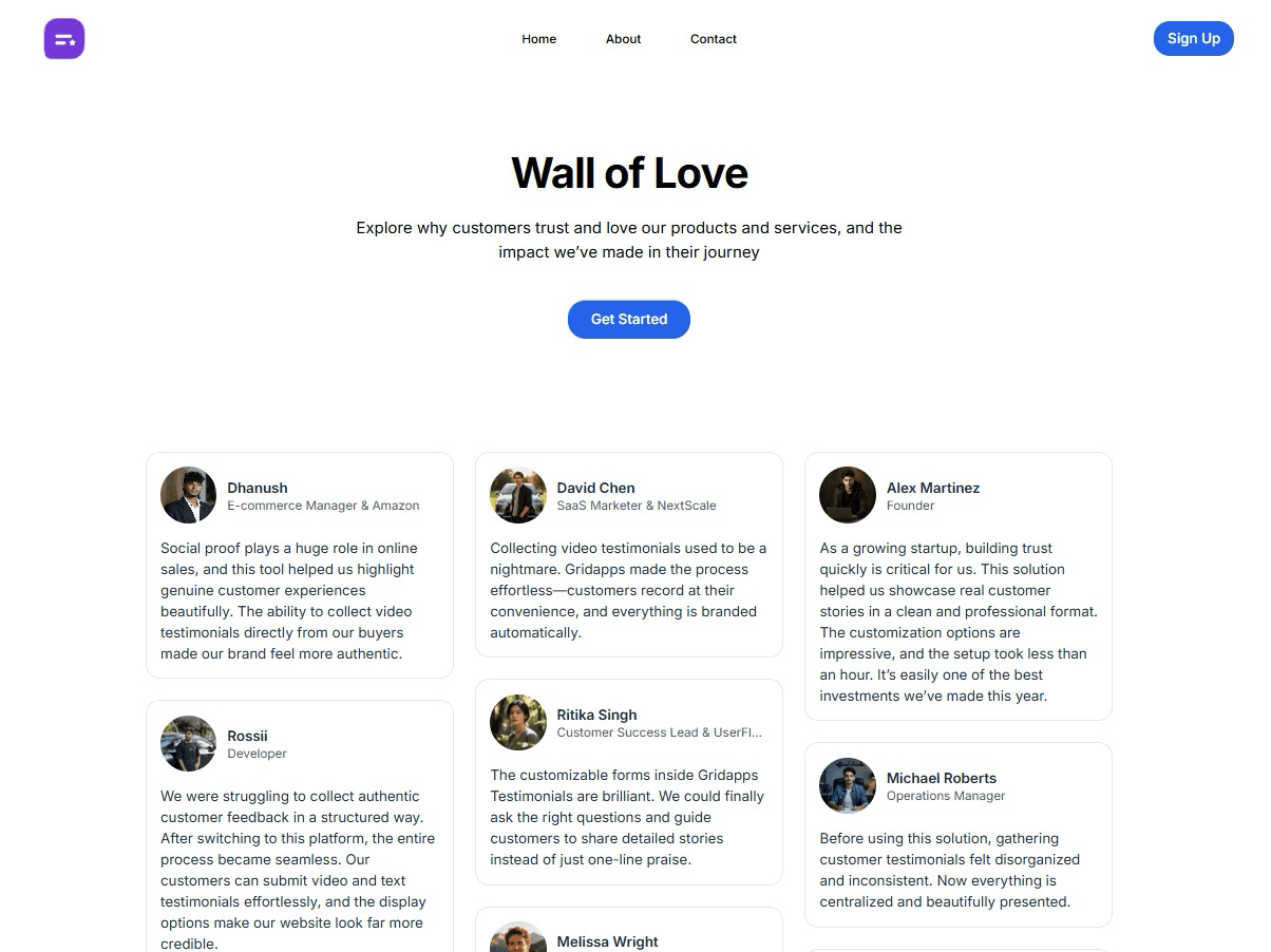 Turn happy customer feedback into a stunning Wall of Love that builds trust and delights visitors.