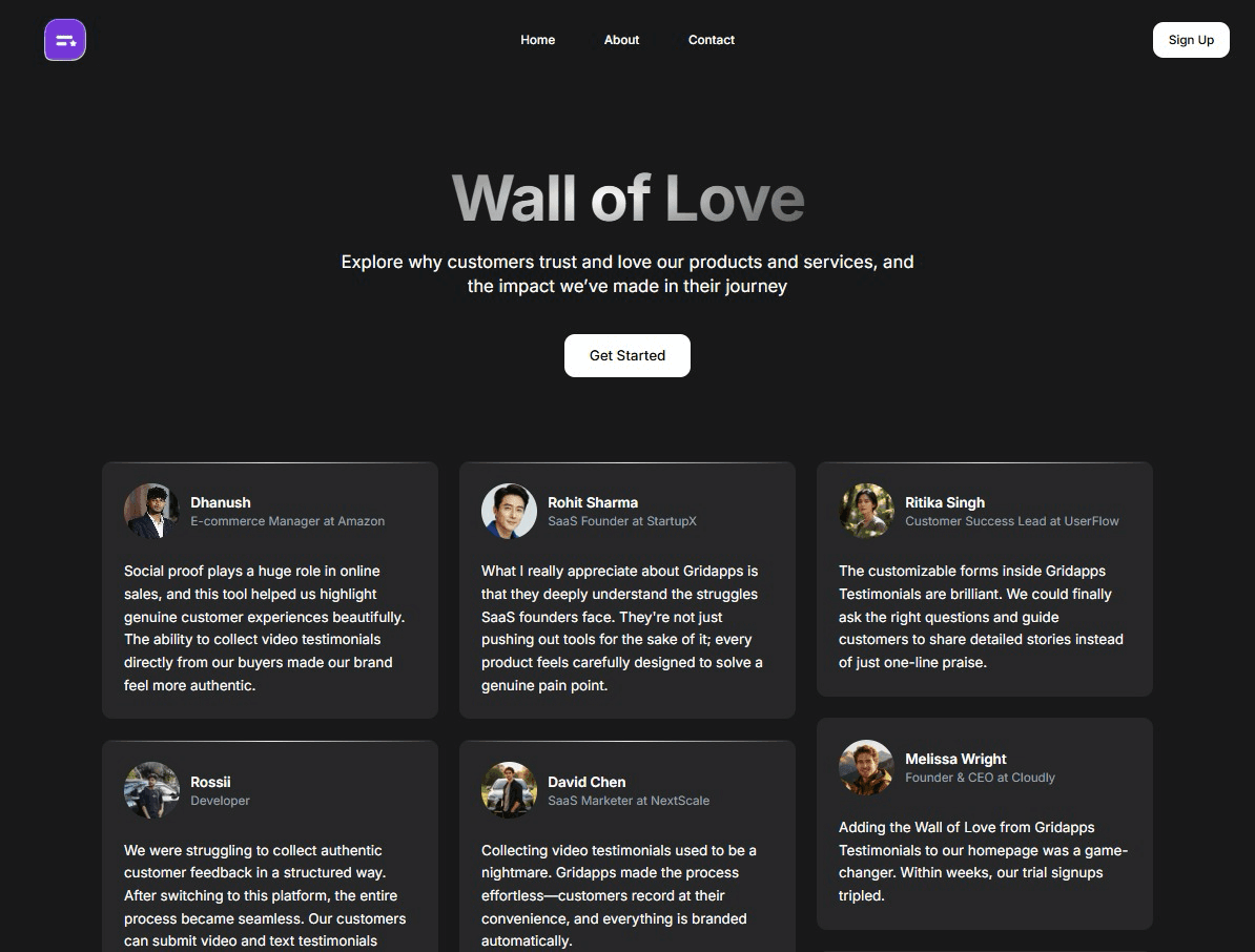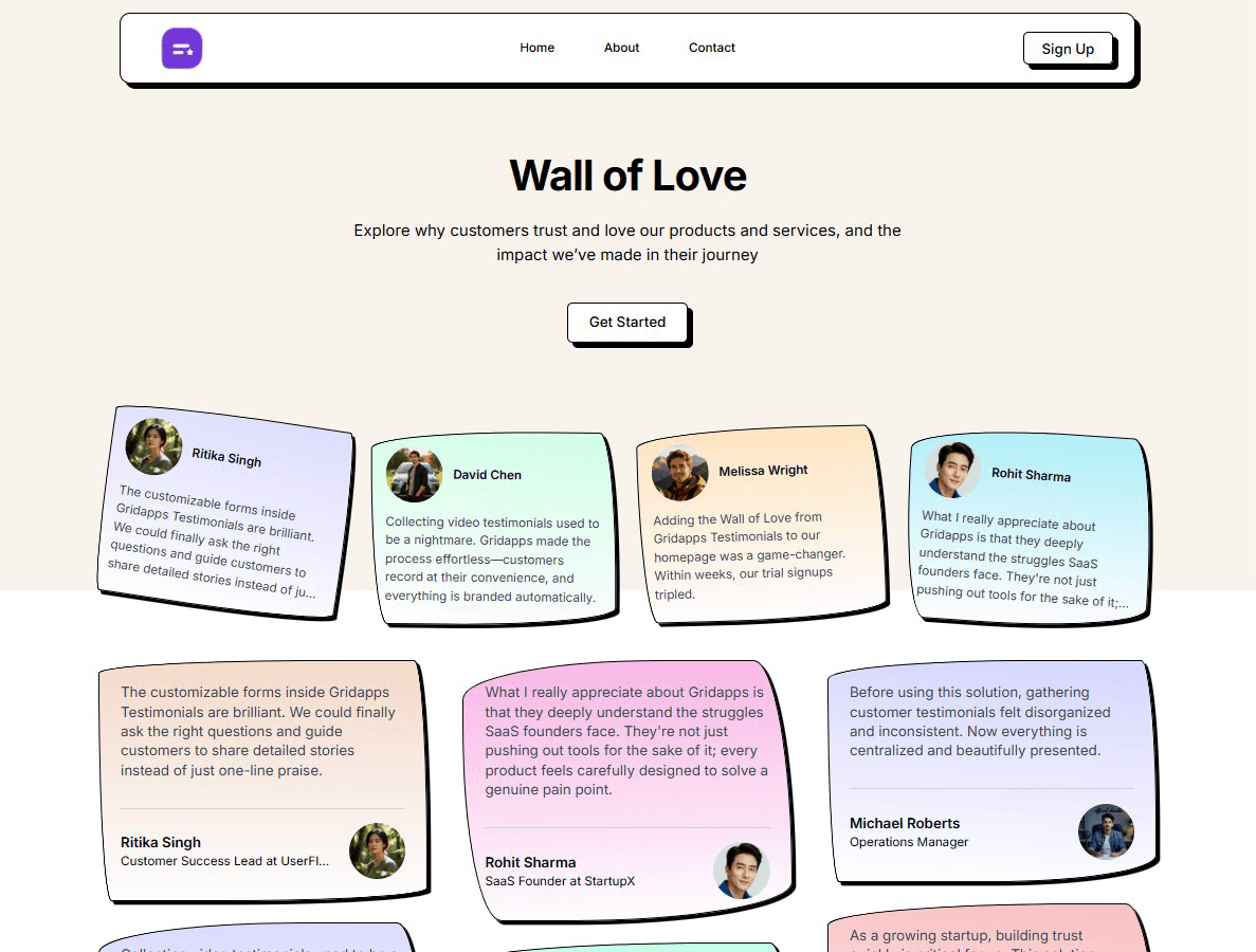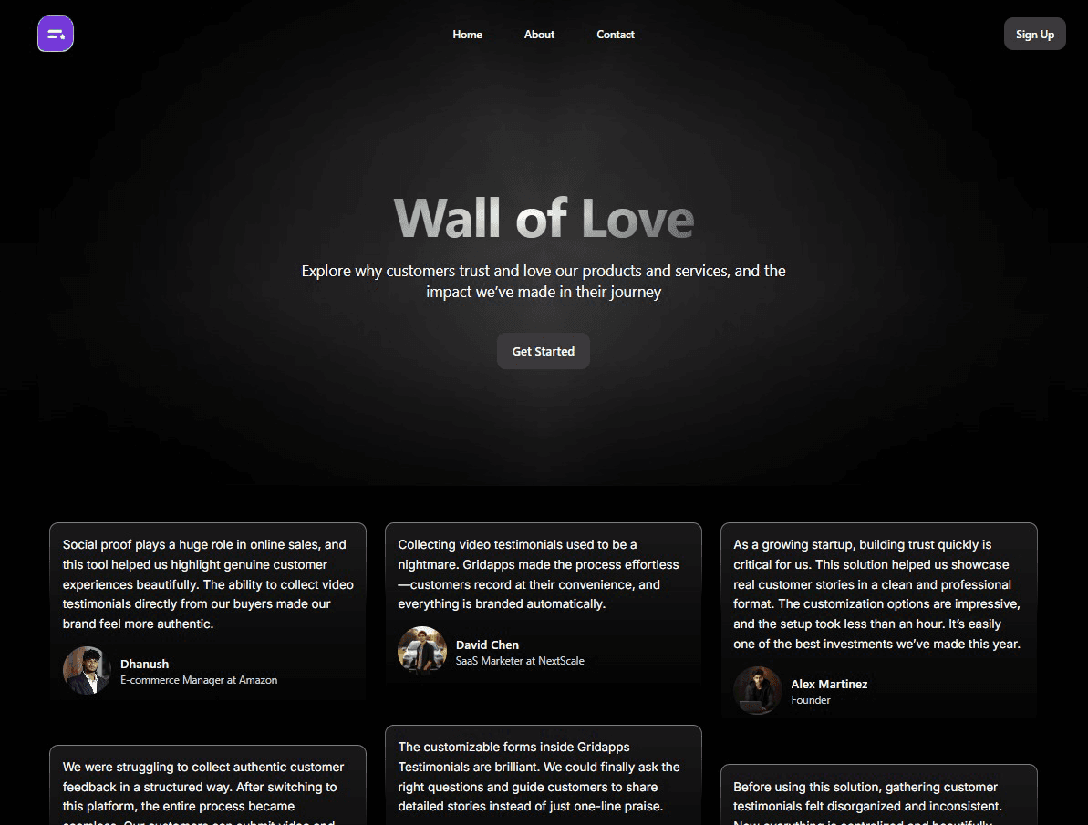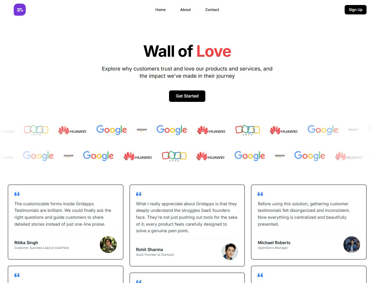 Turn happy customer feedback into a stunning Wall of Love that builds trust and delights visitors.