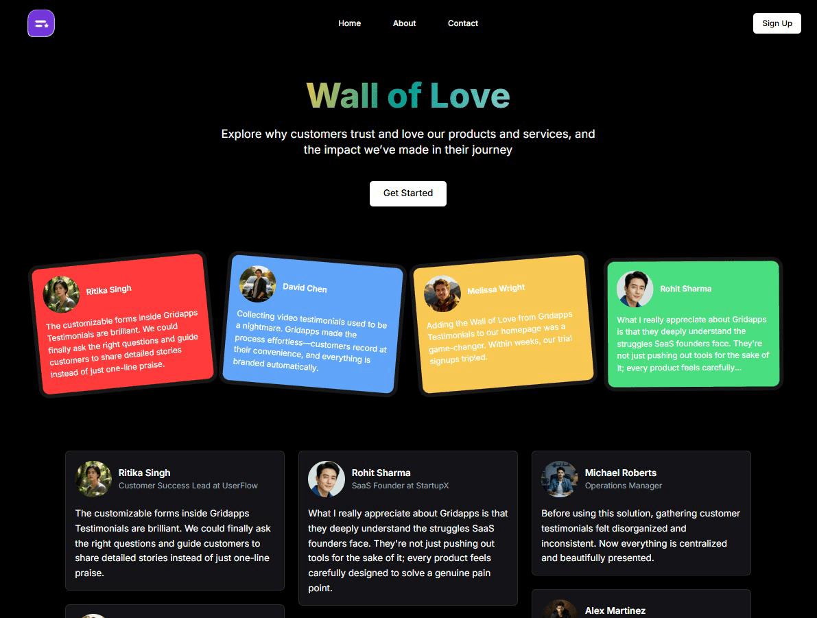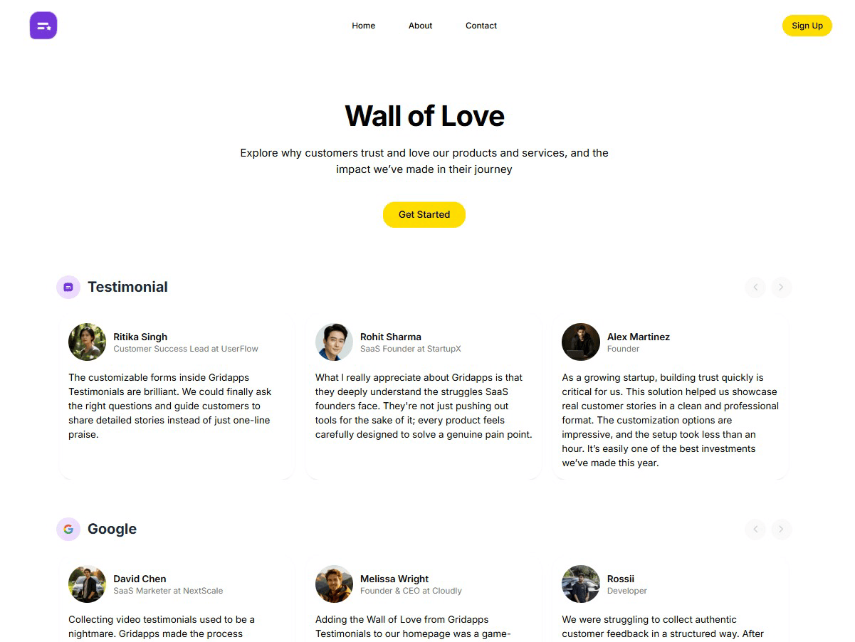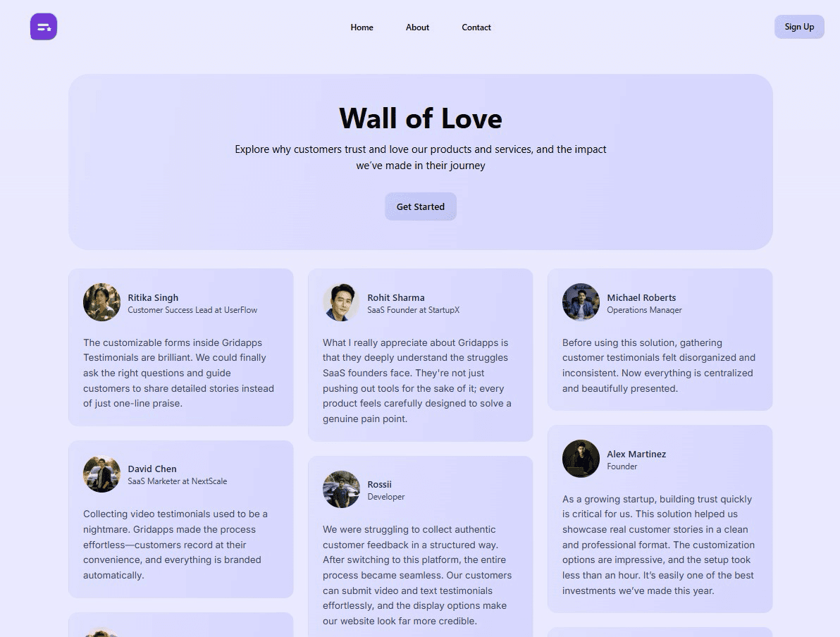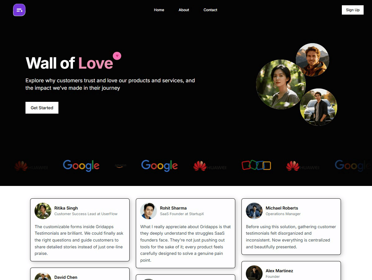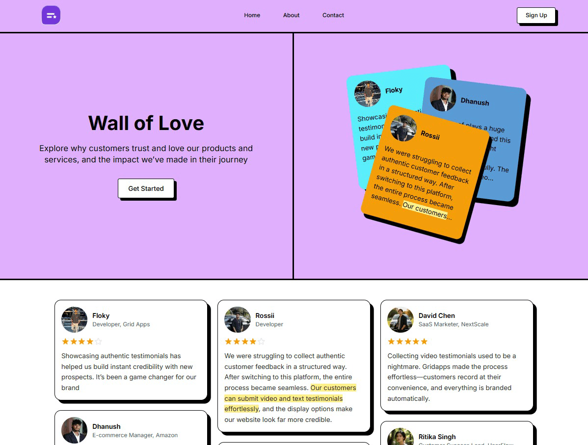 Showcase Testimonials with Beautiful Wall of Love