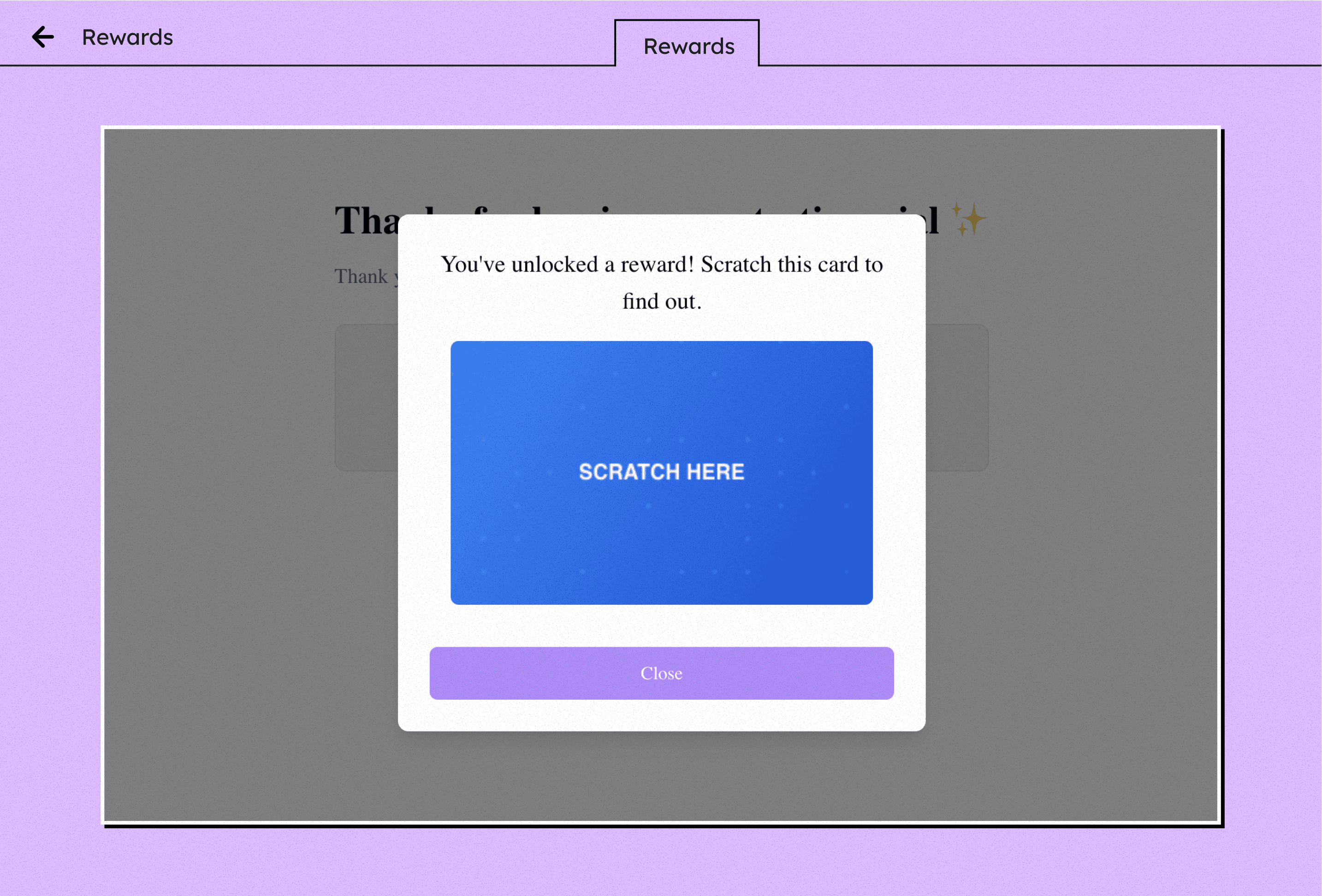 Make giving feedback feel like winning a prize! With our Scratch Card rewards, users get to scratch and reveal a surprise right after they share their testimonial.