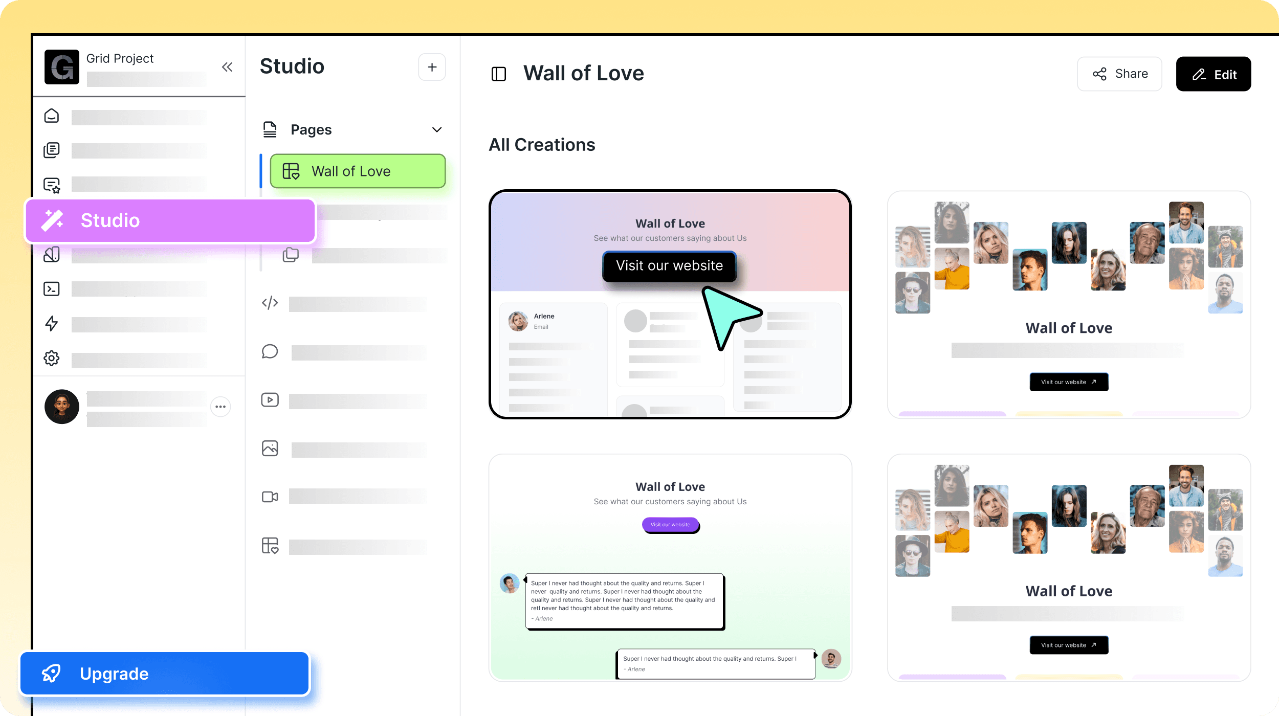 New feedback gets added automatically, so your Wall of Love always stays engaging.